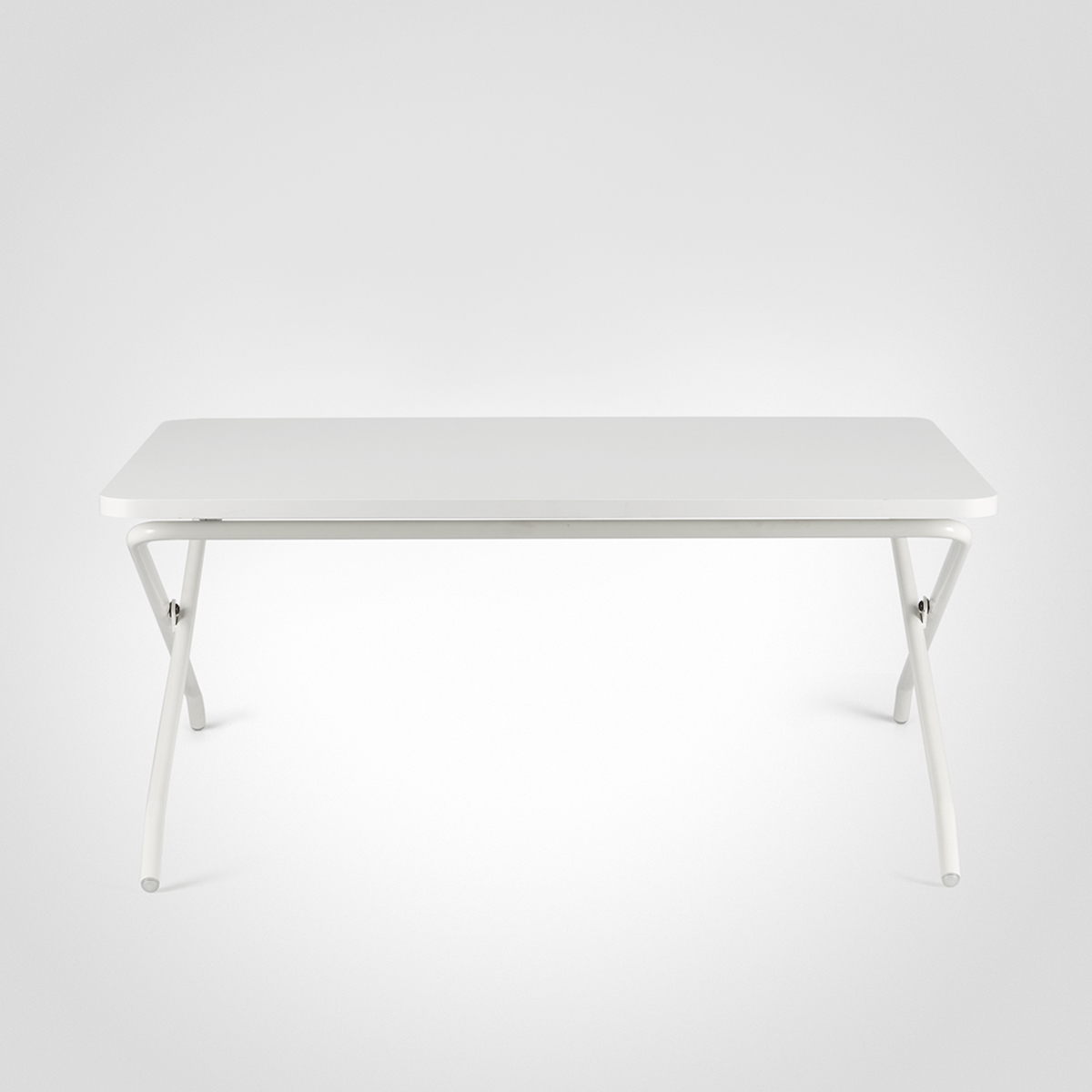 Bordplade i laminat (hvid). Understel i metal (hvid). Højdejusterbar.