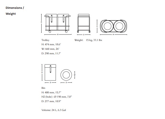 Længde 660 mmDybde 298 mmHøjde 474 mm
