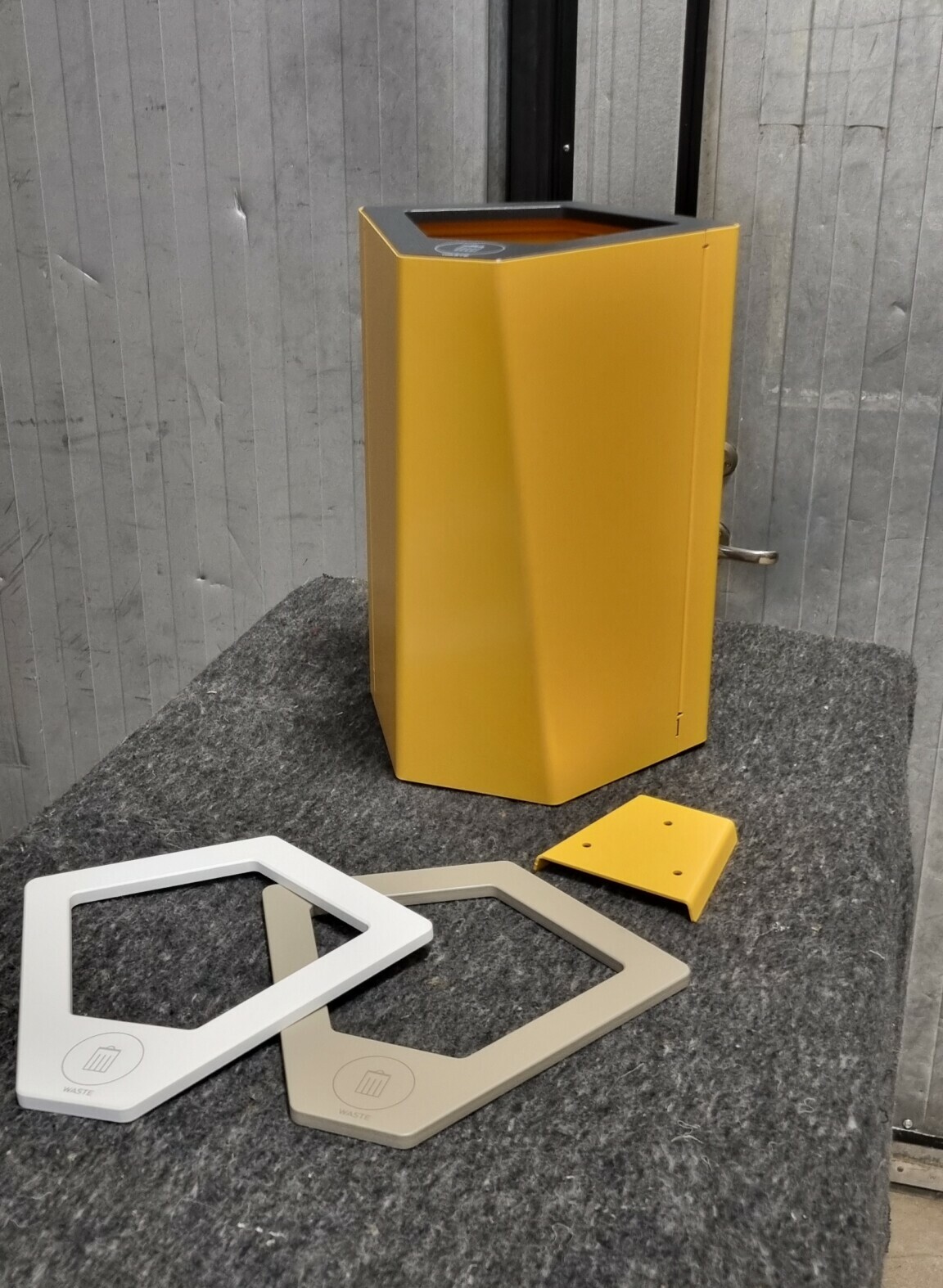 Väggfäste följer med för fästning mot vägg. Lock finns i Vit, Antracit och Olivgrå färg med olika symboler.