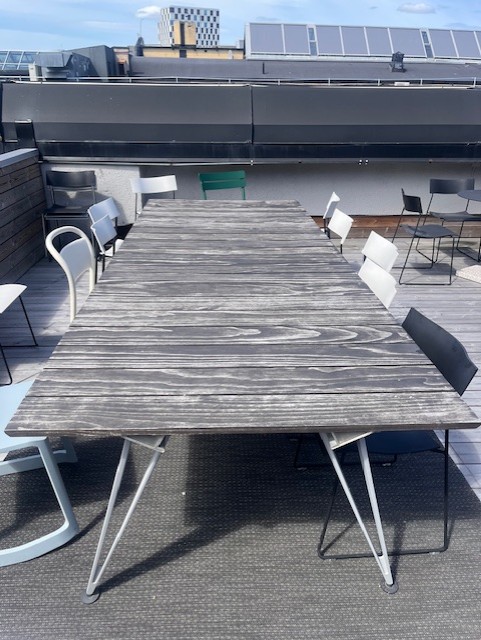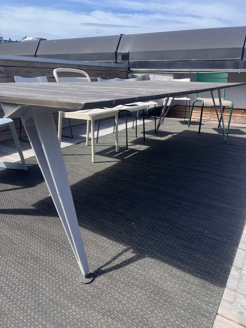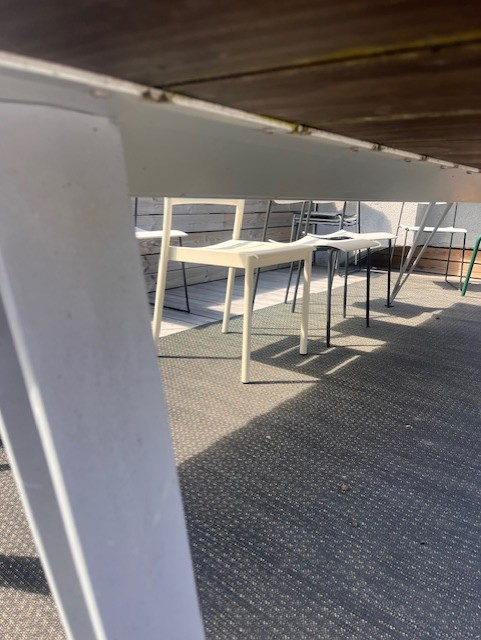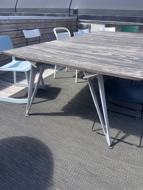 Bordplade i metall (andet). Understel i metall (aluminium).