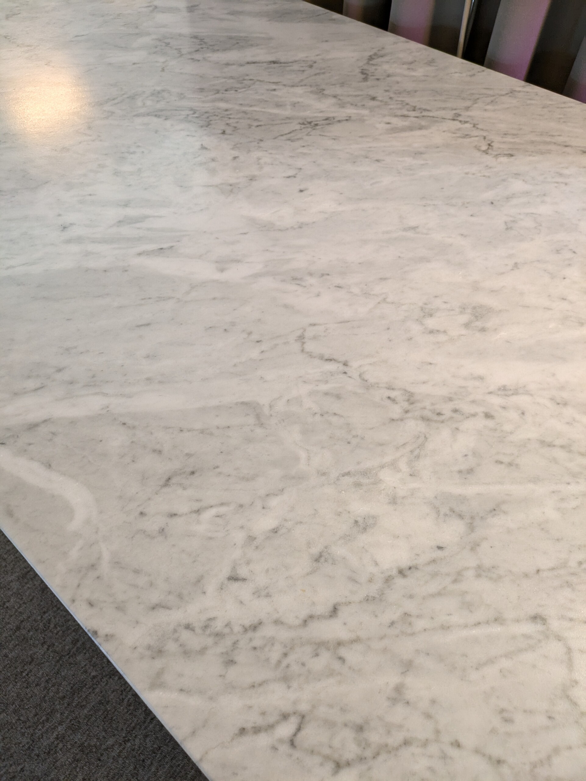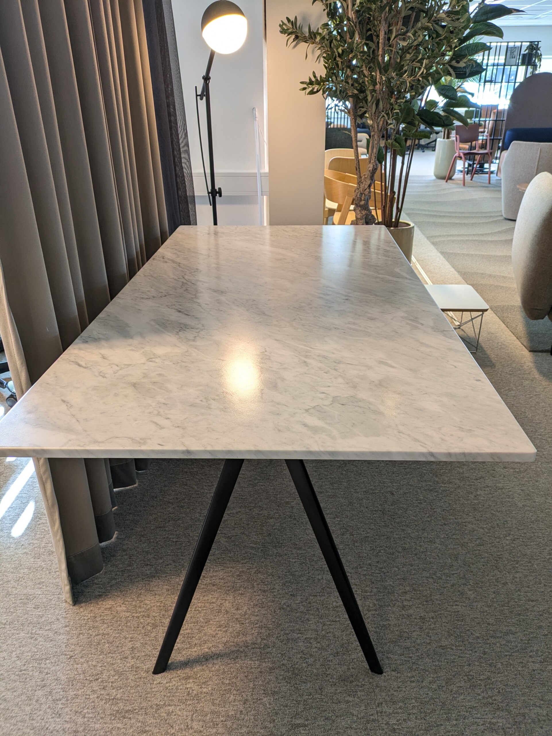 Bordplade i sten. Understel i metall (sort).