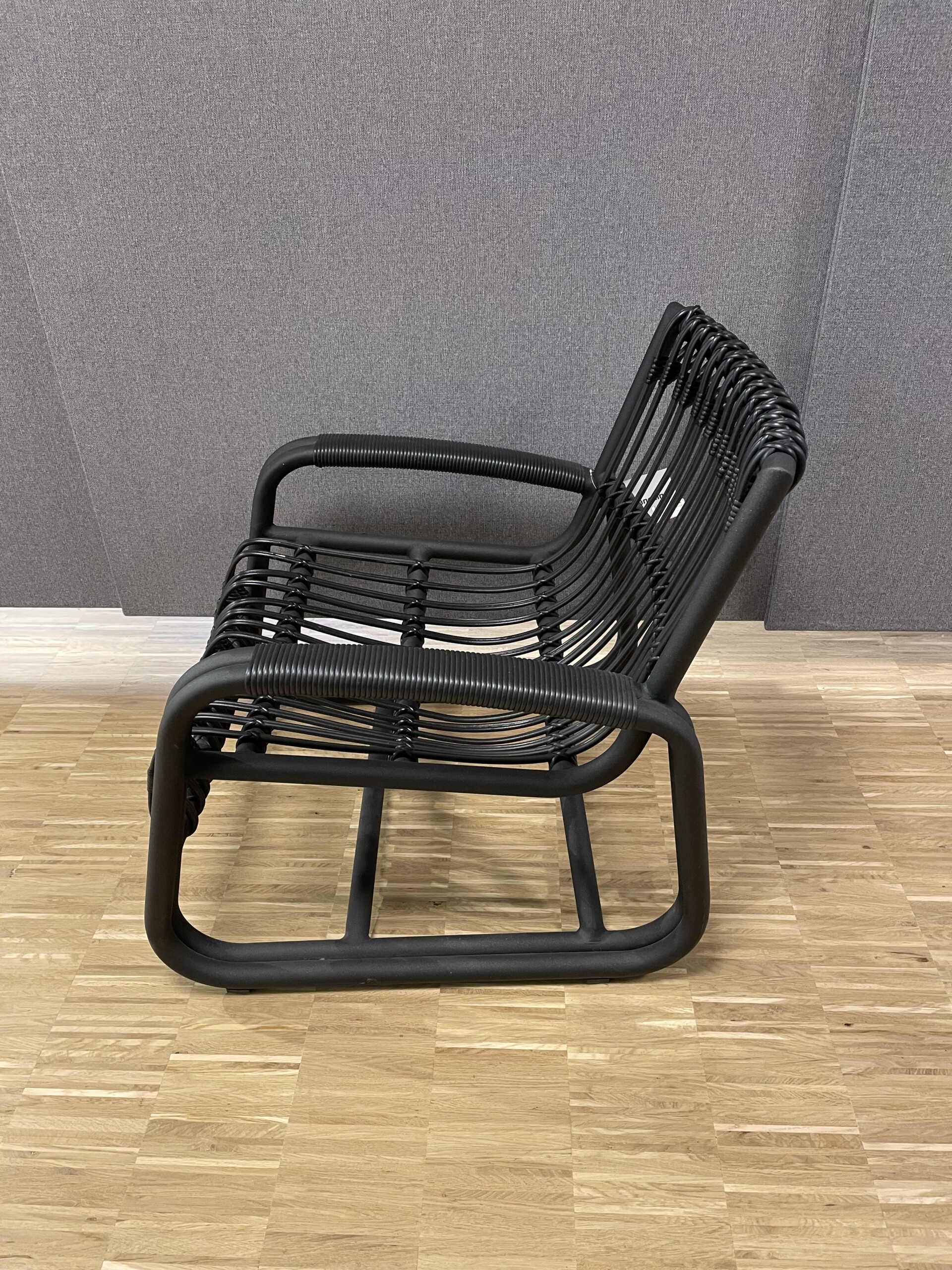 Sæde og ryg i plast (sort). Medestel i metal (sort).